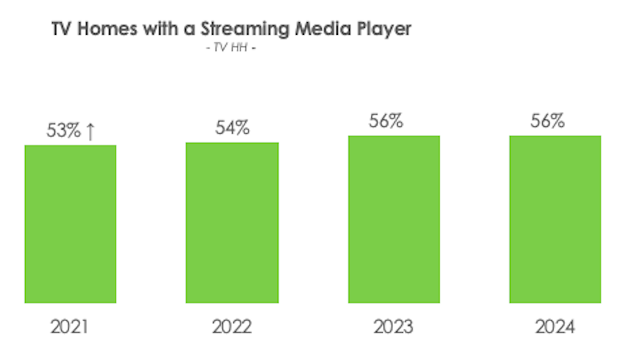 While separate streaming media player devices such as Roku and FireTV are in half of respondent homes, device growth has stalled compared to all-in-one smart TVs that promote seamless integration for viewers.