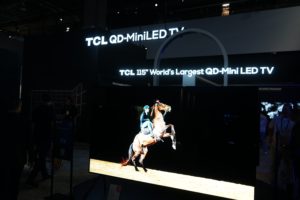 TCL exhibited its new line of QM6K TVs, featuring TCL’s enhanced QD-Mini LED system and powered by its new Halo Control Technology Suite of hardware and processing advancements. Also at the TCL booth was the 115-inch TCL QM7K Mini-LED TV, which the company says is the world’s largest.
