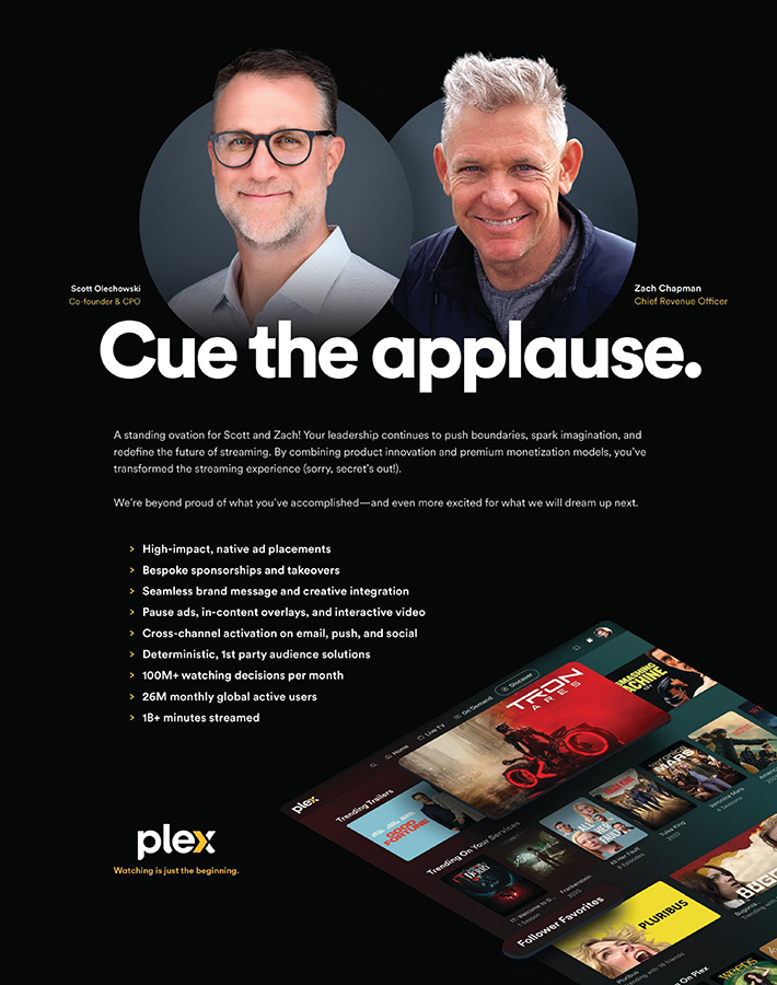 Chapman leads revenue efforts across direct and sponsorship advertising, programmatic/audience sales, data licensing and strategic partnerships. In just six months at Plex, he has assembled an ad sales team, leading to onboarding multiple new media partners across the United States, Canada and EMEA, and amplifying direct brand partner presence. He works tirelessly with the Plex product and marketing teams to expand ad suite capabilities. And such cutting-edge ad innovation as pause ads, content overlay interactive units for CTV and innovative sponsorship packages are now being implemented, while leveraging Plex’s products and audience behavior data. Chapman joined Plex from NBCUniversal, where he was SVP of Global Partnerships, overseeing all ad and partnership revenue outside the United States as well as domestic and international large-scale agency partnerships. Before that, he spent eight years at The Walt Disney Co. in leadership roles across programmatic and audience sales, ESPN International across LATAM, EMEA and APAC, and growing the Category Partnership and Ad Sales Research organizations.