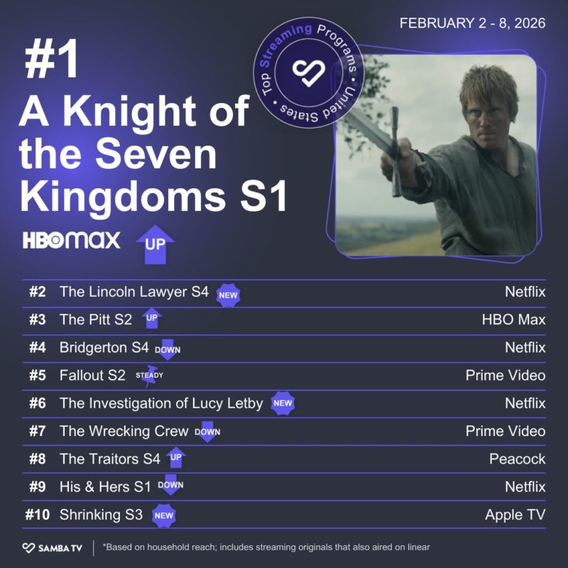 Samba TV: ‘A Knight of the Seven Kingdoms’ Tops Weekly Streaming Viewership Through Feb. 8