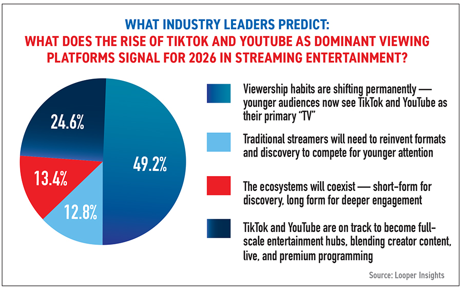 “Traditional streamers aren’t competing with each other anymore; they’re competing with YouTube for TV viewers’ attention,” Looper Insights’ Bertrand notes. “That means rethinking discovery, pacing, and even creator-driven formats if they want to stay relevant.”