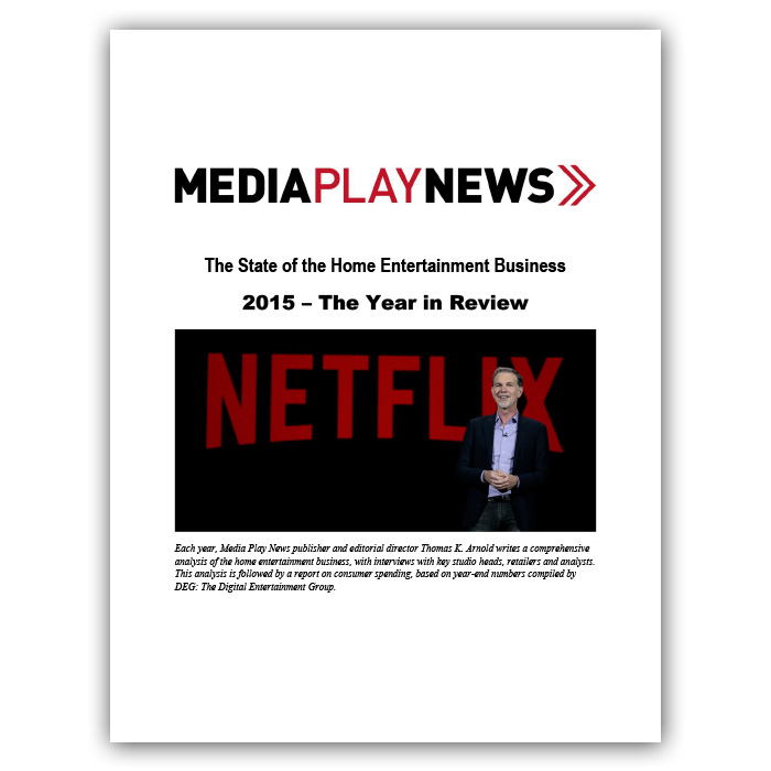 Each year, Media Play News publisher and editorial director Thomas K. Arnold writes a comprehensive analysis of the home entertainment business, with interviews with key studio heads, retailers and analysts. This analysis is followed by a report on consumer spending, based on year-end numbers compiled by DEG: The Digital Entertainment Group. Media Play News has packaged these two annual year-end stories into downloadable PDFs that provide a detailed retrospective of the year in question. We have reports dating back to 2006, available at $40 each for instant download. Please select the year and the quantity from the pulldown menu; payment may be made with any major credit card or through PayPal.