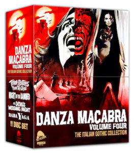 Italian gothic takes some very unexpected turns down cobwebbed corridors with this quartet of classics, now restored in UHD for the first time ever. Queen of Italian horror Barbara Steele stars in Massimo Pupillo’s grisly Terror-Creatures From the Grave, presented in both its U.S. and Italian versions on three discs. Director Filippo Walter Ratti melds classic gothic tropes with explicit ’70s sexuality in Night of the Damned. Mark Damon and Rosalba Neri consummate the ultimate Satanic mayhem in The Devil’s Wedding Night from director Luigi Batzella and cinematographer/second unit director Joe D’Amato. And Hollywood legend Carroll Baker stars in Corrado Farina’s pop art erotic shocker Baba Yaga, a four-disc set that includes the first-ever release of a Piero Umiliani soundtrack compilation.